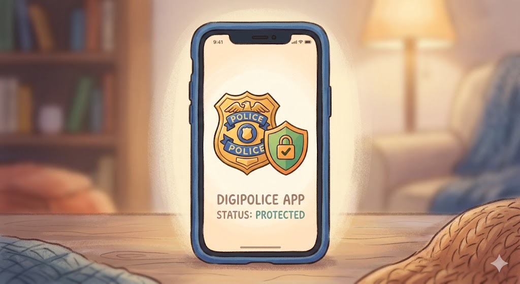 - 「警察の目」を意識させる スマホの画面にデジポリスのアイコンがある。それだけで、娘のなかに「ネットは決して安全な場所ではない」という緊張感が生まれます。
